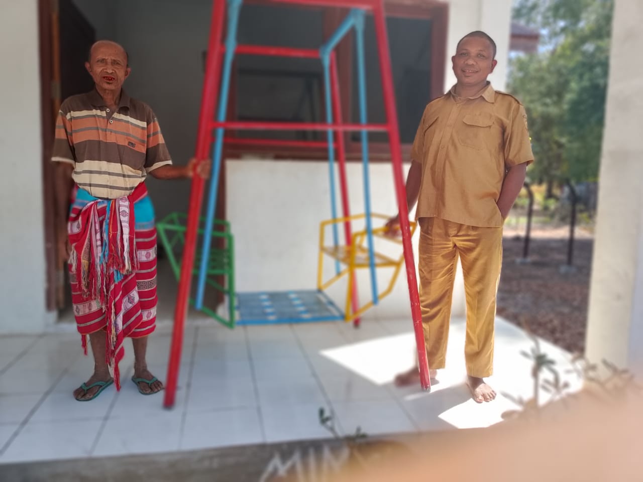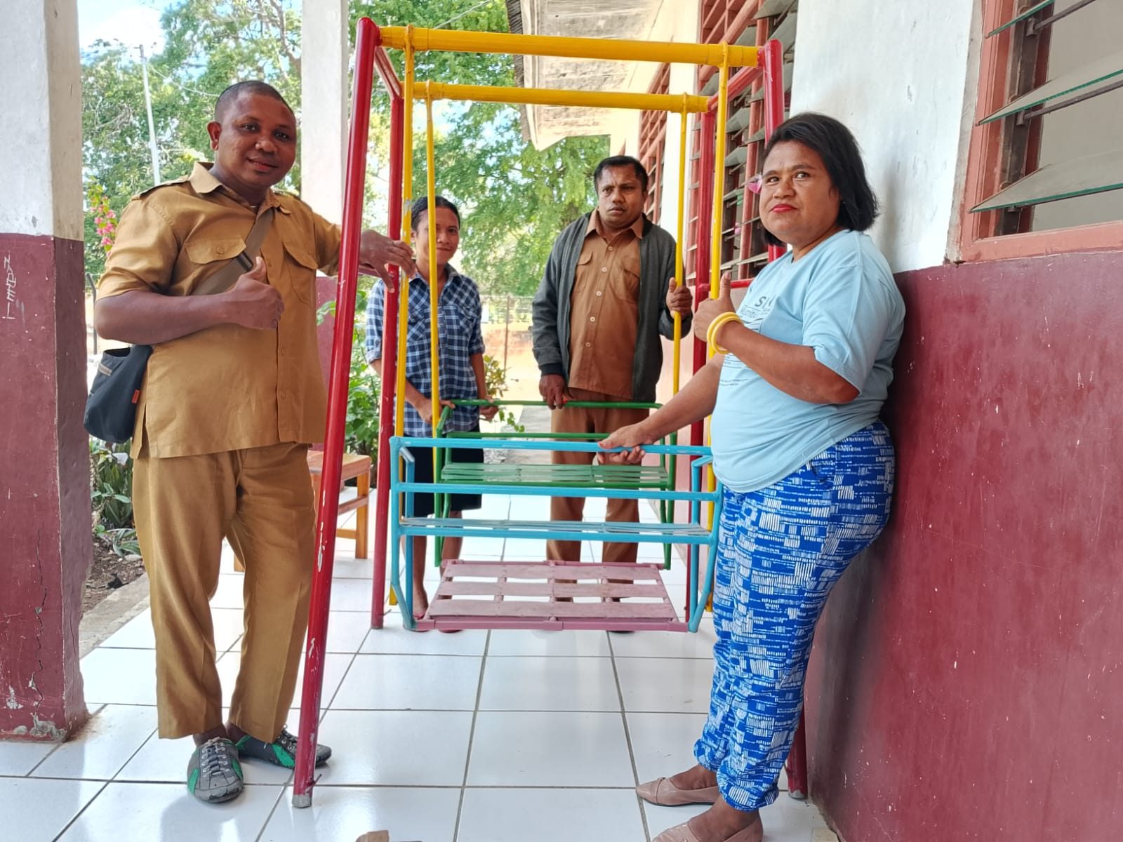 Kades Antonius Tak saat menyerahkan bantuan APE mengharapkan agar anak-anak bisa memanfaatkan ayunan yang diberikan untuk belajar mengembangkan keterampilan sosial dan motorik mereka.